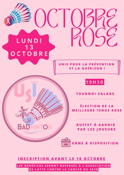 octobre rose pour les licenciés et partenaires du club. Récolte de dons pour l'association de lutte contre le cancer du sein.