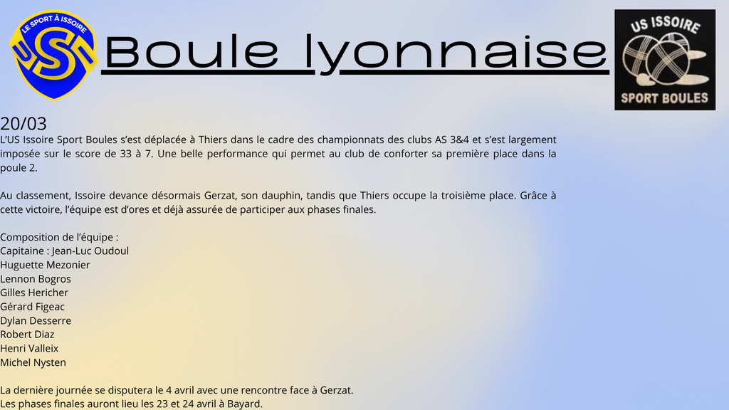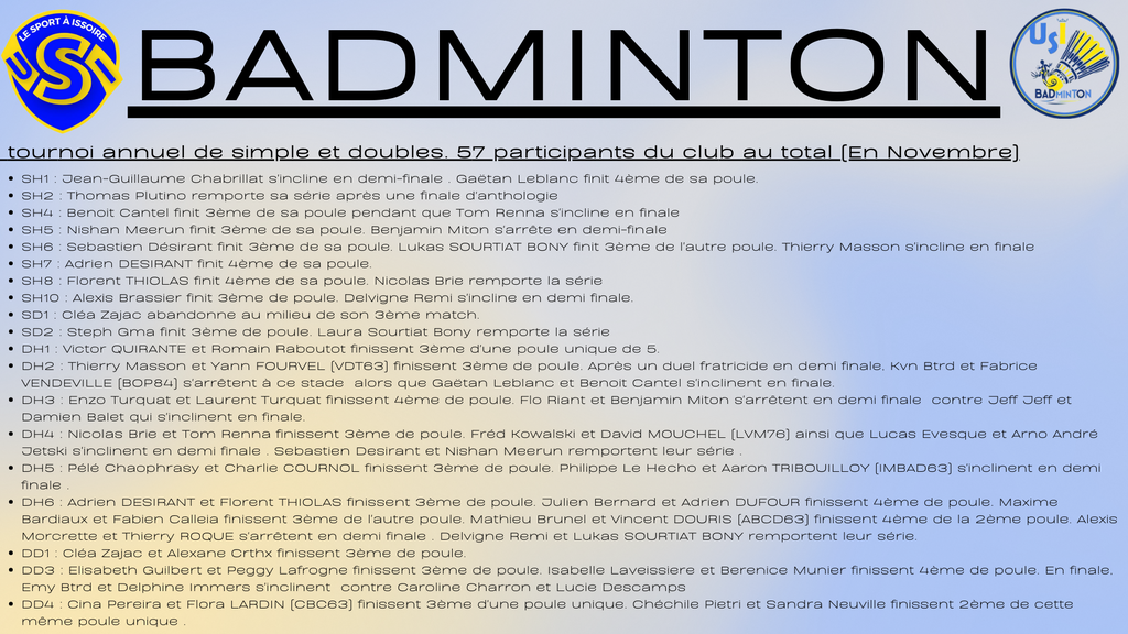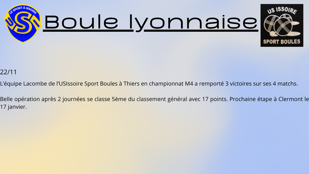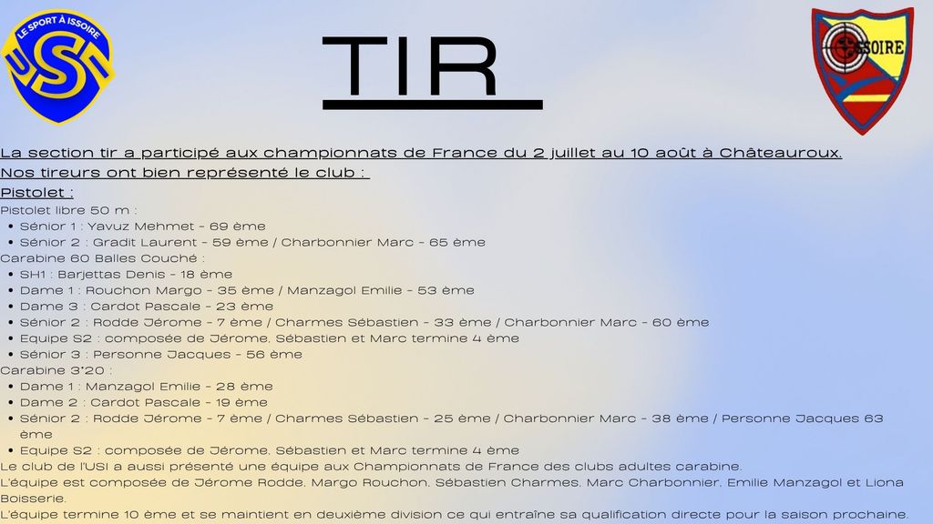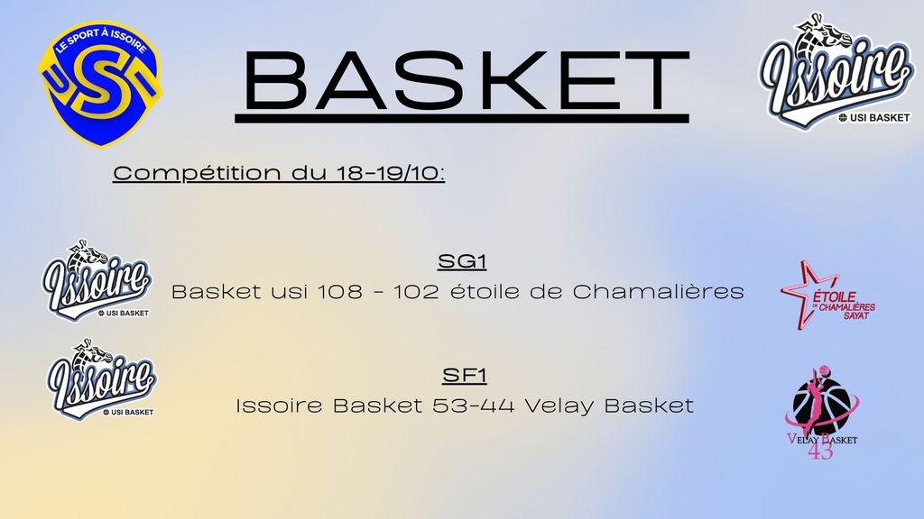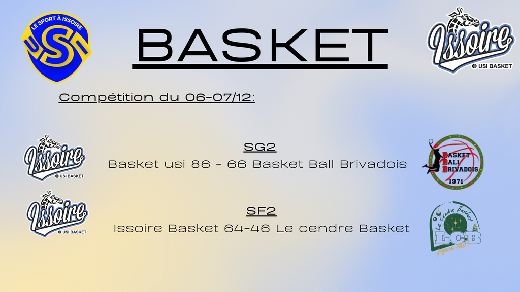 | Basket équipe 1 masculin régional 3 Poule C | 3ème | 17 | 10 | 7/3 | |