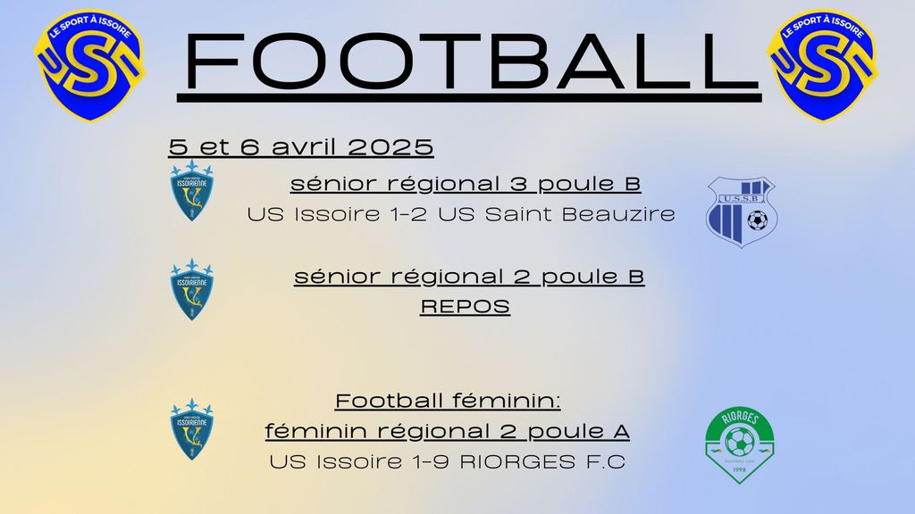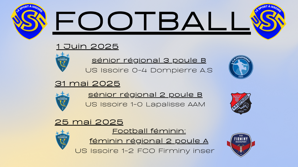 | Football équipe 1 masculin régional 3 poule B | 11ème | 19 | 18 | 5/4/9 | |