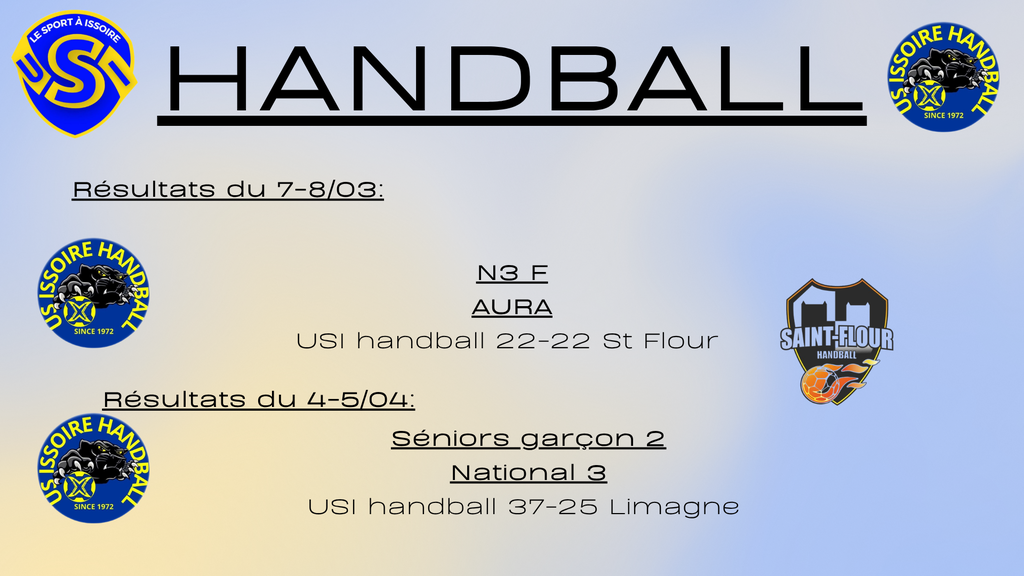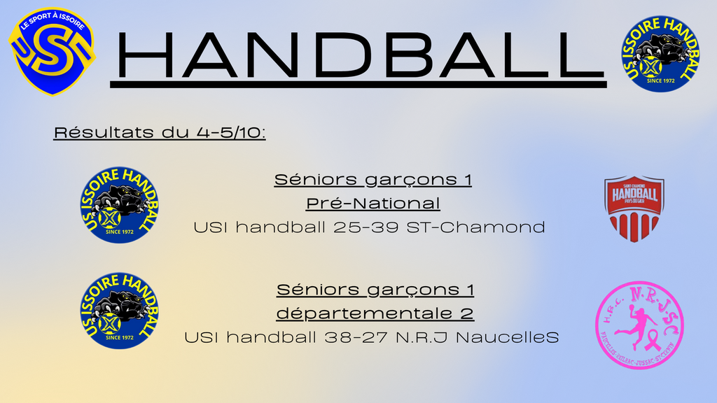| Handball équipe 1 masculin prénationale | 7ème | 39 | 20 | /// | |
