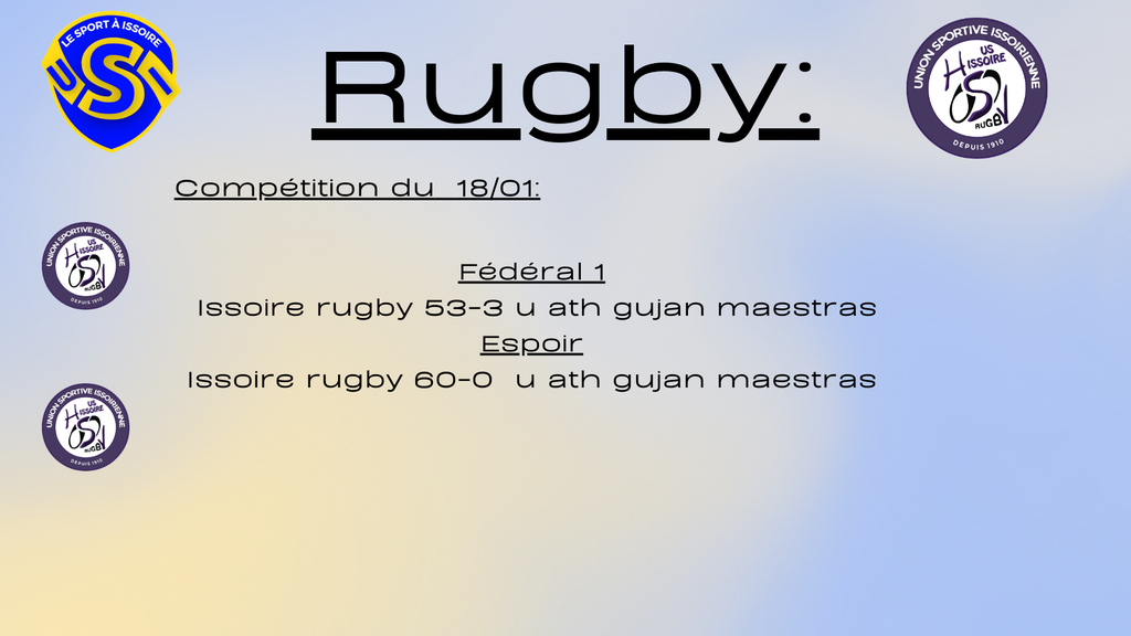 | Rugby équipe espoir | 2ème | 100 | 23 | 21/0/2 | |