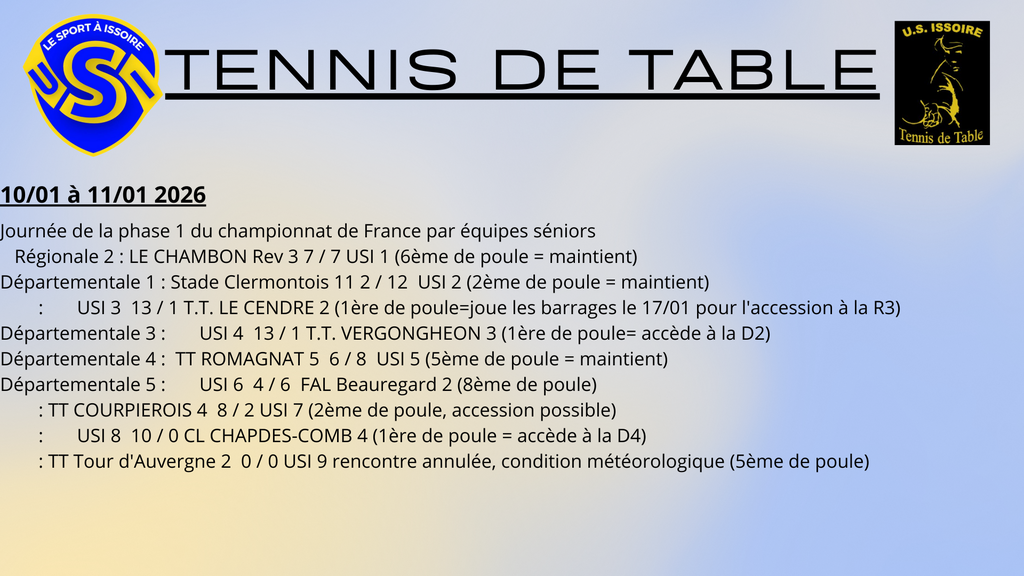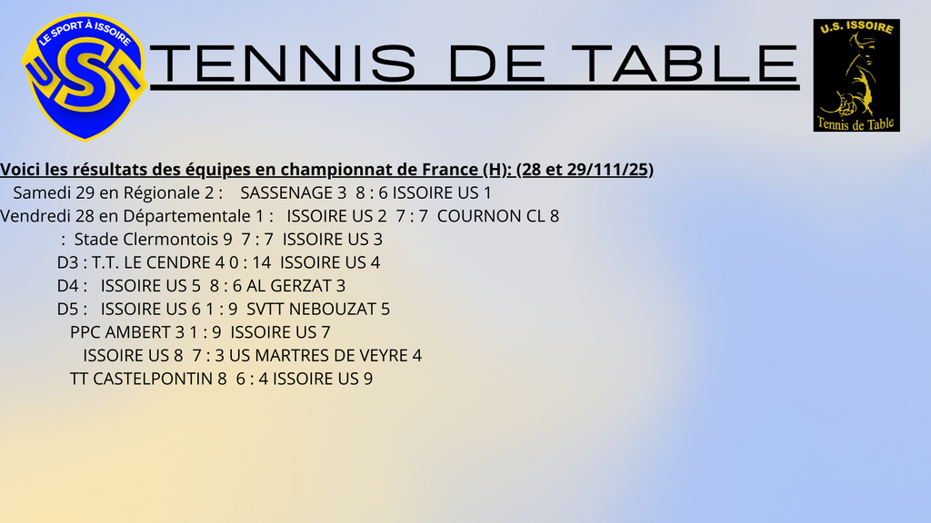 | Les sports CO | classement | Pts | Matchs joués | Victoire/nul/défaite | |